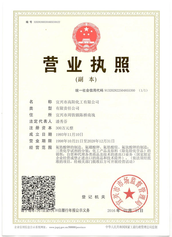 Copyright(C)2022, Yixing Gaoyang Chemical Co., Ltd. All Rights Reserved. Supported by ChinaChemNet ChemNet Toocle Copyright Notice 備案序號(hào):蘇ICP備11031881號(hào)